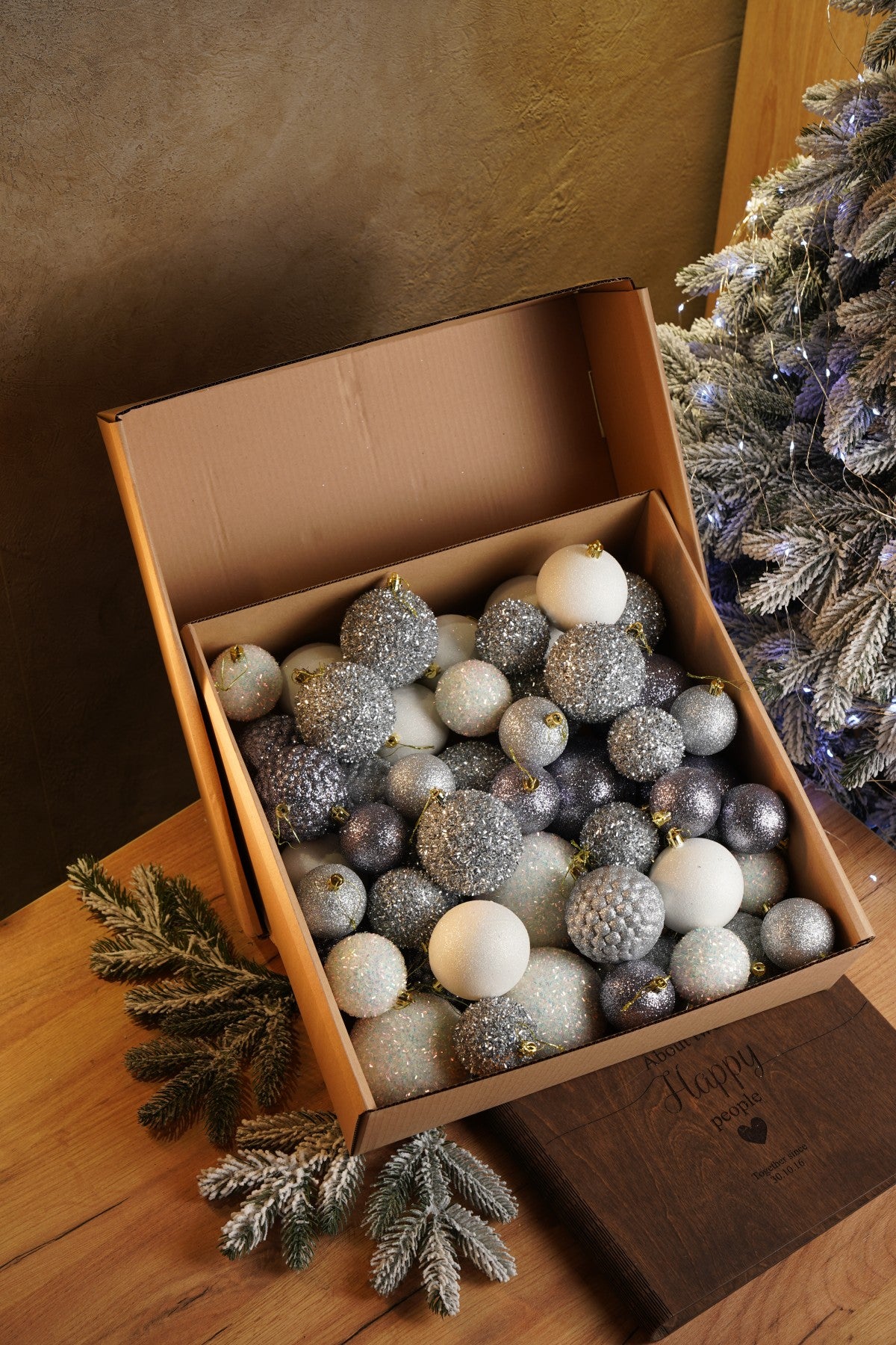 Новорічні кулі 40 шт Мікс Блиск Срібний Білий Набір новорічних куль