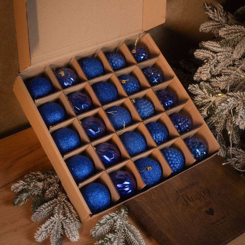 Новорічні кулі 25 шт Асорті Синій Набір ялинкових куль
