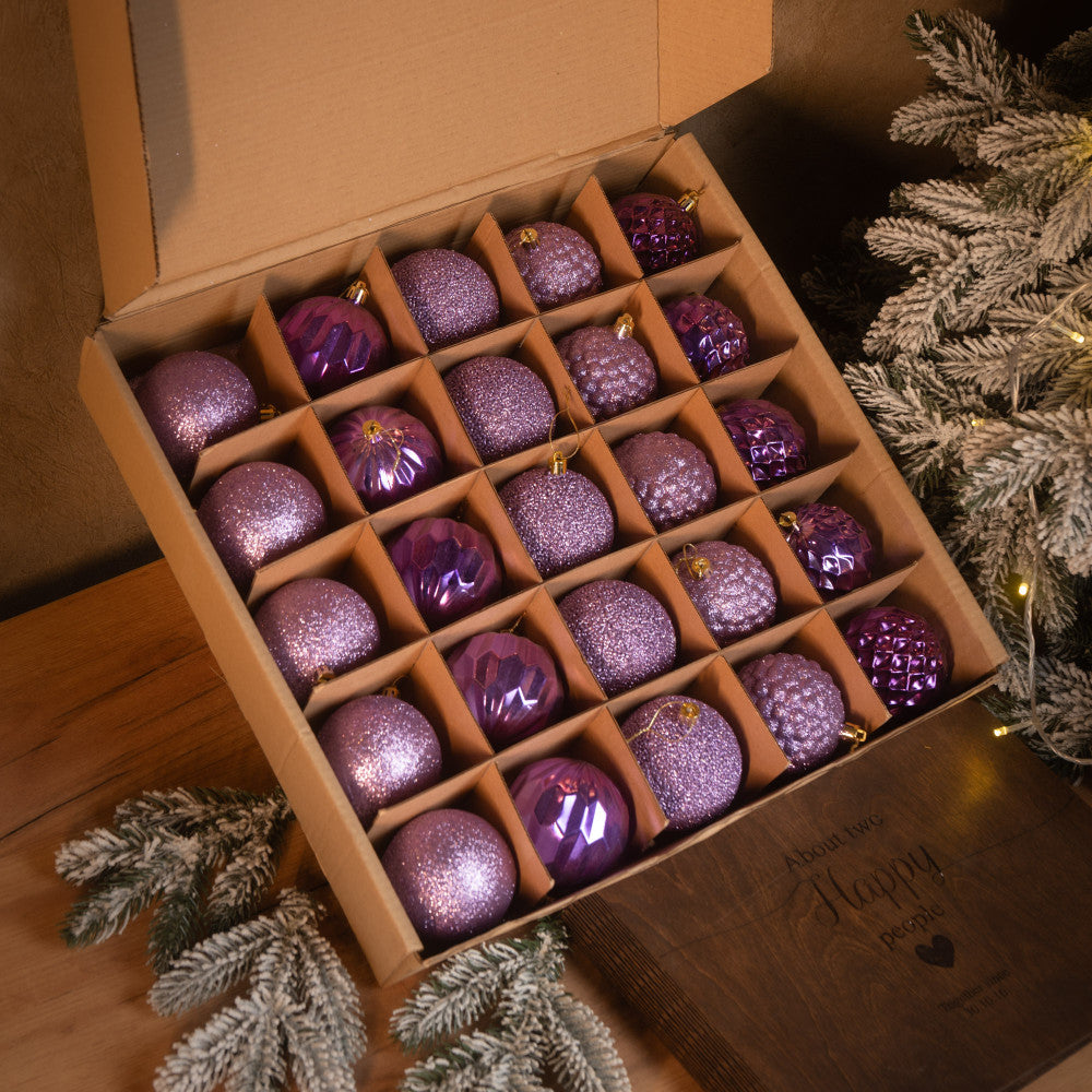 Новорічні кулі 25 шт Асорті Фіолетовий Набір ялинкових куль