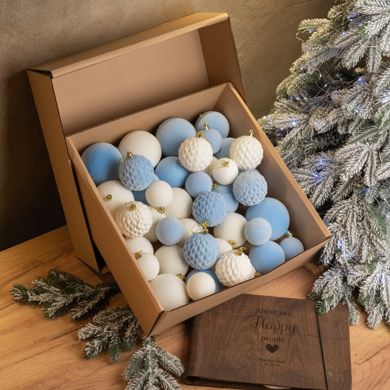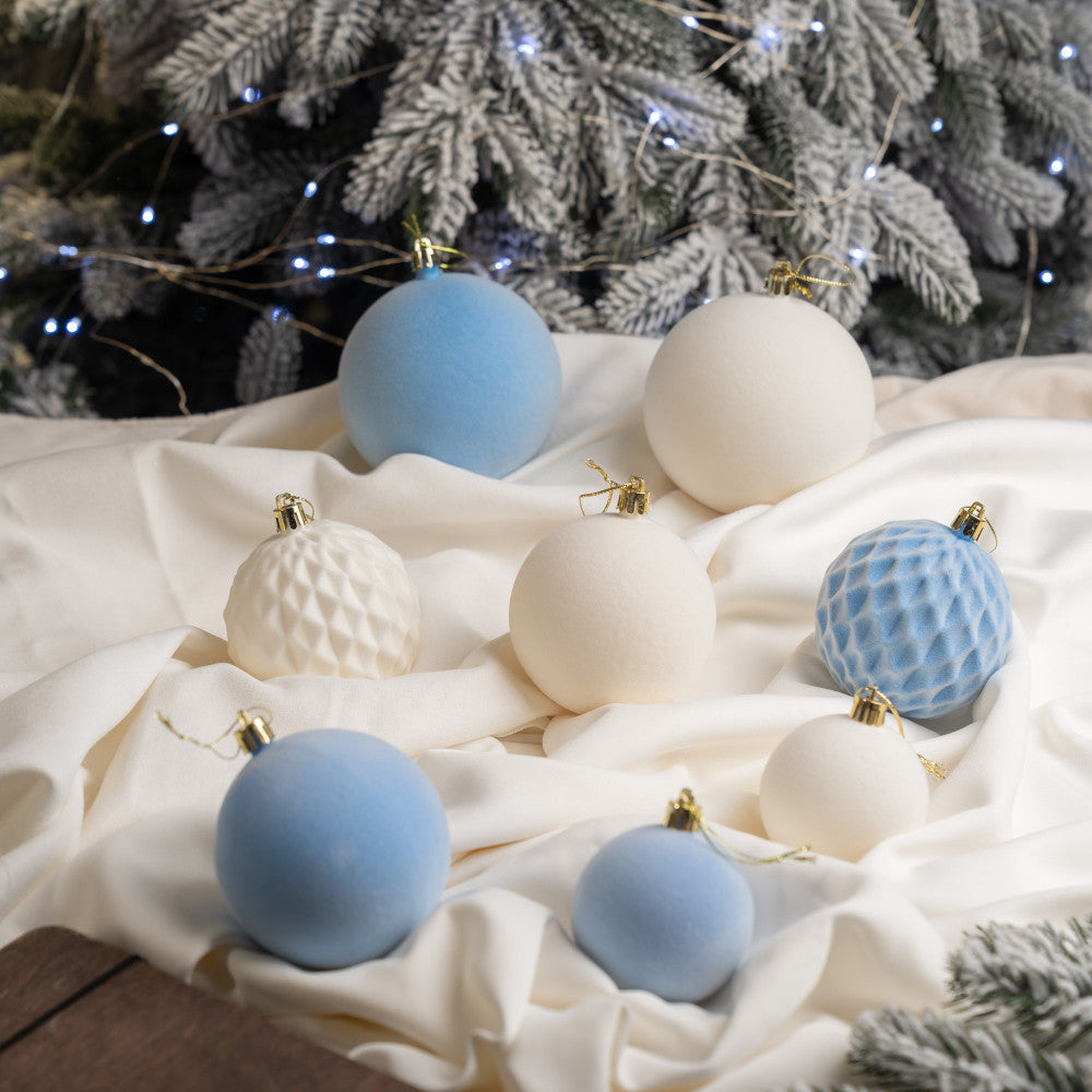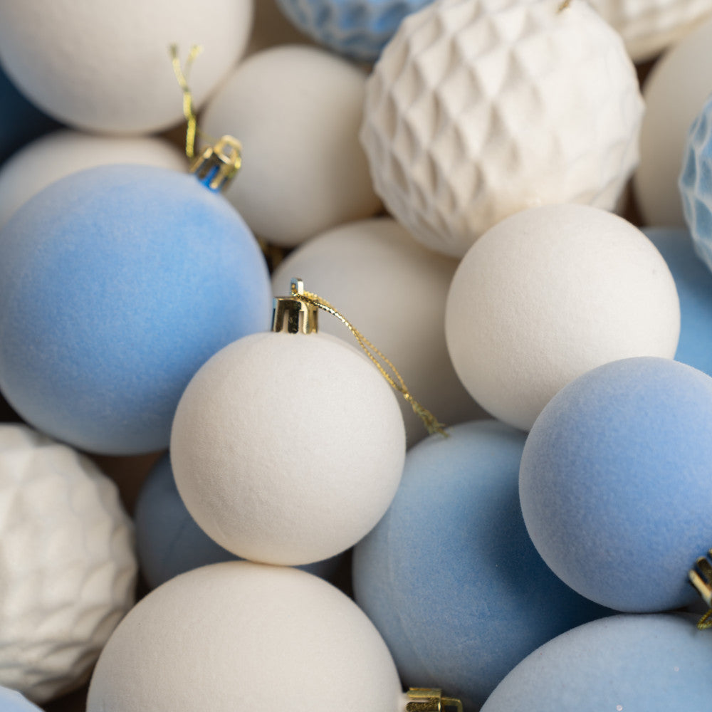 Новорічні кулі 40 шт Мікс Бархат Блакитний Білий Набір новорічних куль