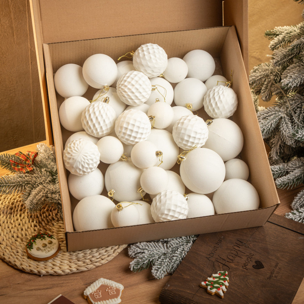 Новорічні кулі 40 шт Мікс Бархат Білий Набір новорічних куль