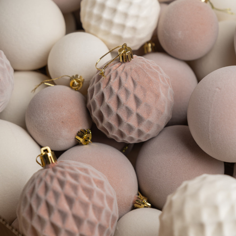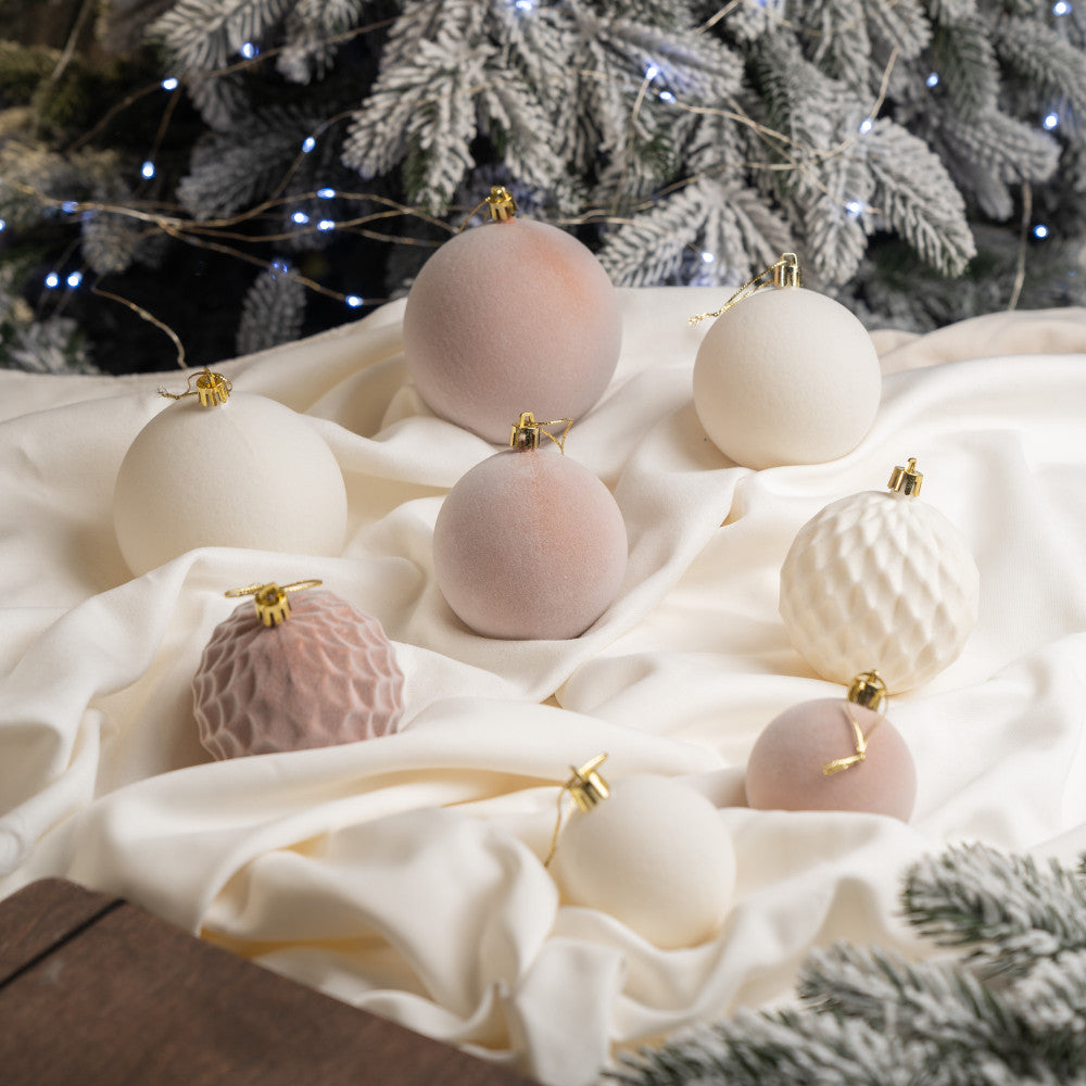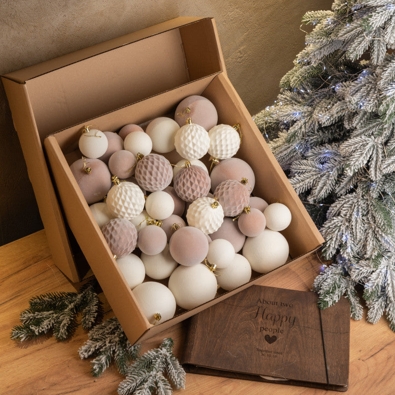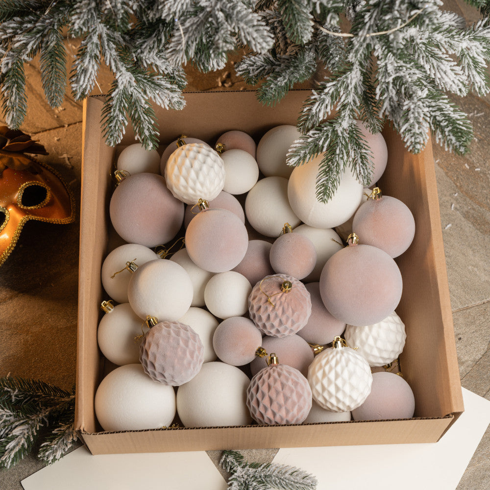 Новорічні кулі 40 шт Мікс Бархат Нюд Бежевий Білий Набір новорічних куль