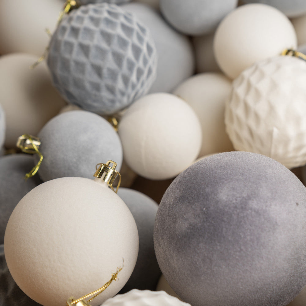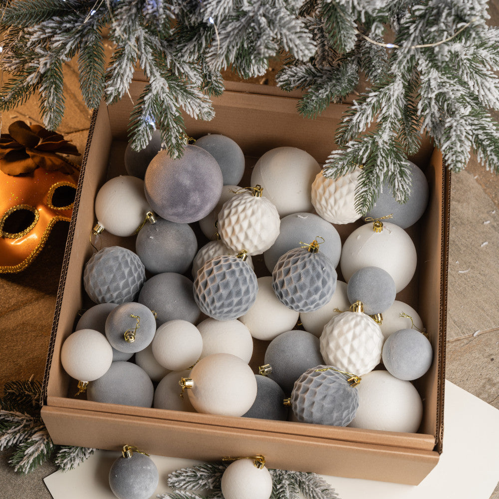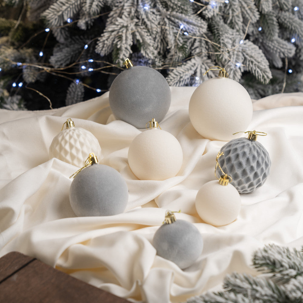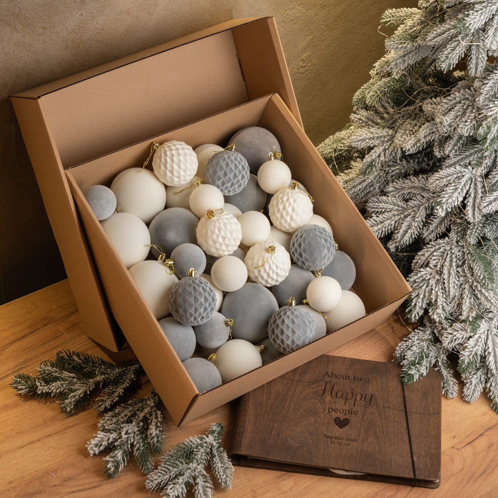 Новорічні кулі 40 шт Мікс Бархат Нюд Сірий Білий Набір новорічних куль