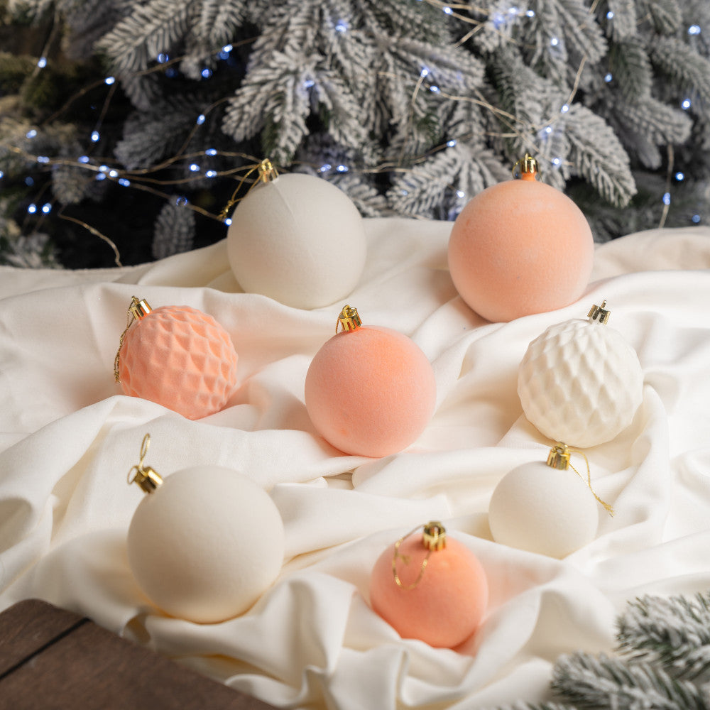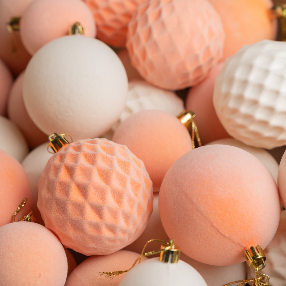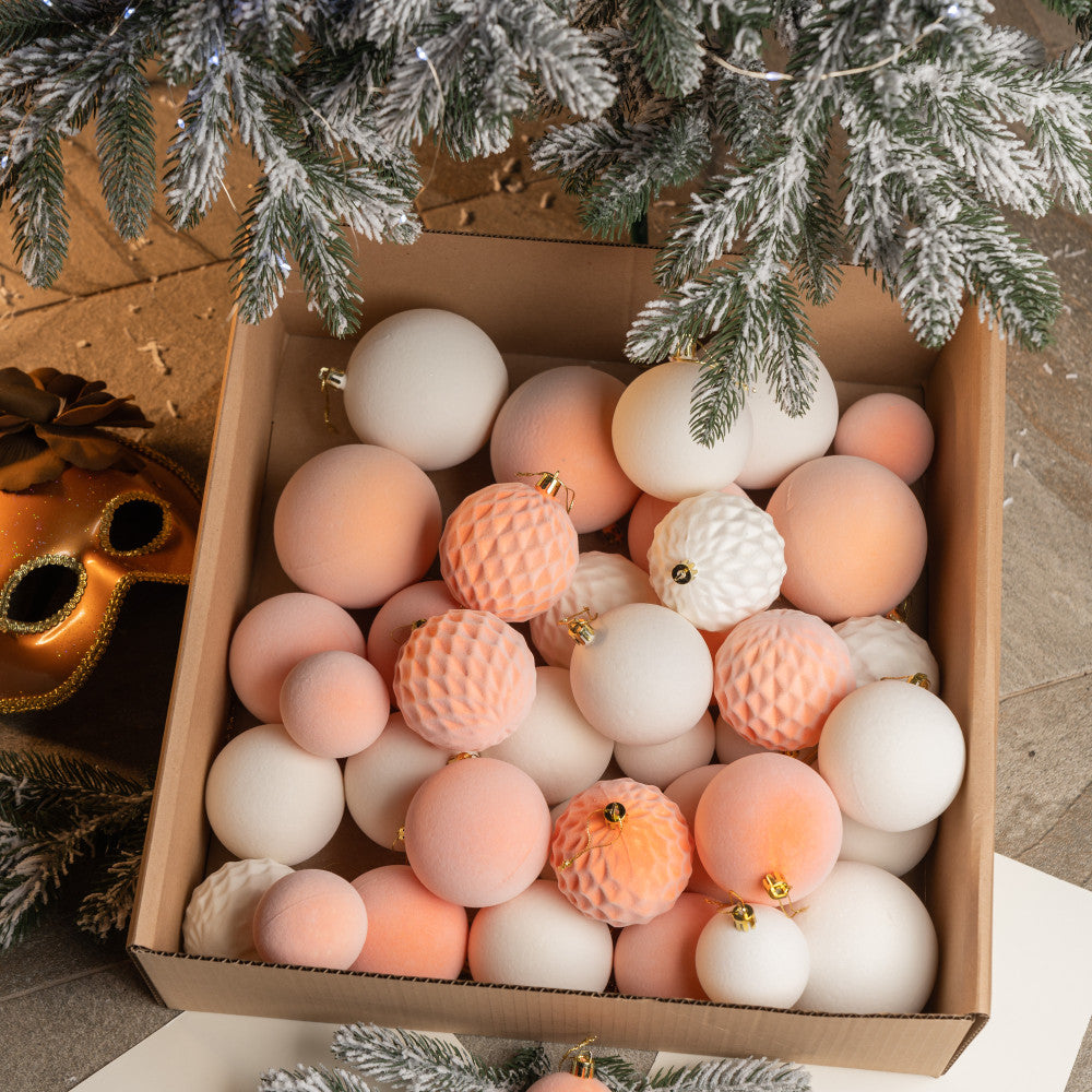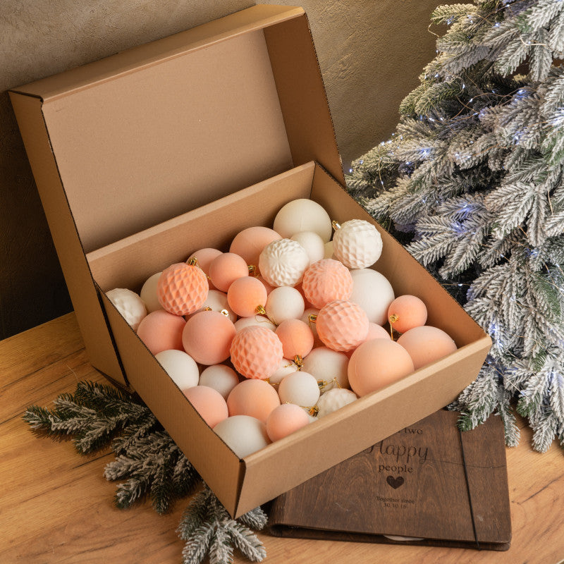 Новорічні кулі 40 шт Мікс Бархат Персиковий Білий Набір новорічних куль