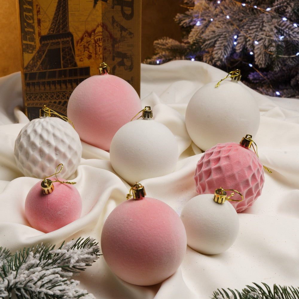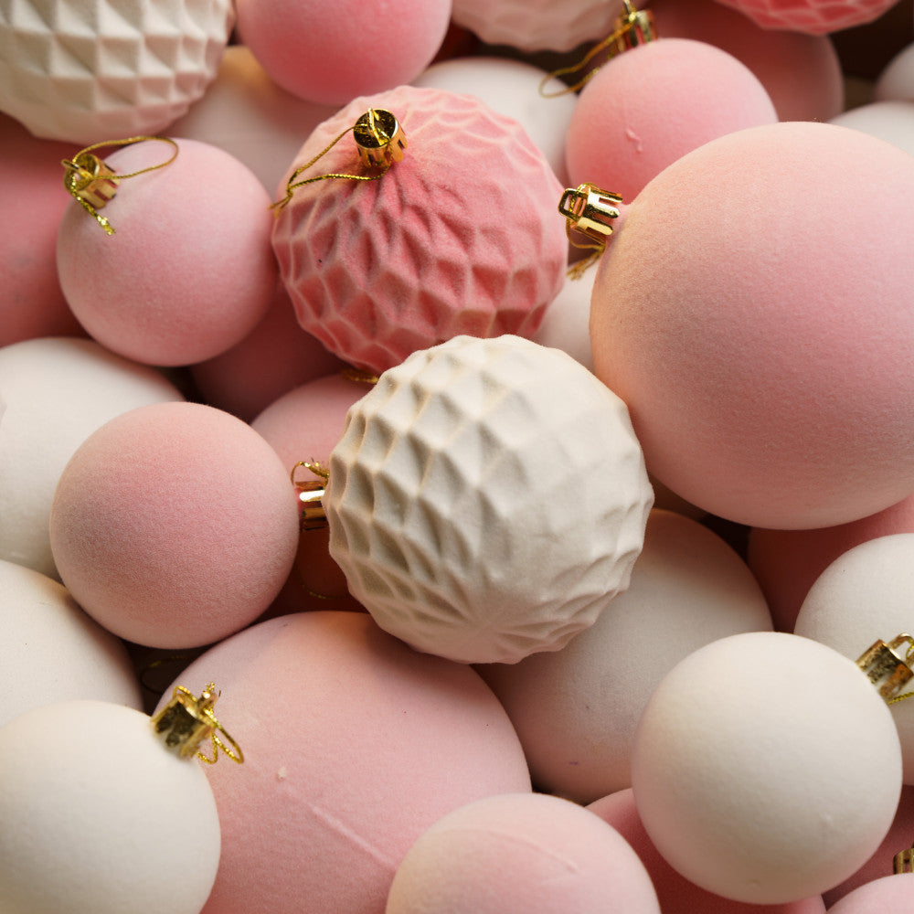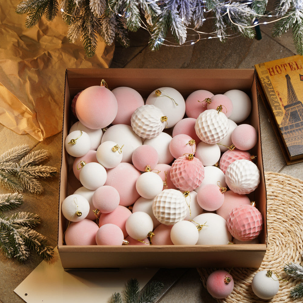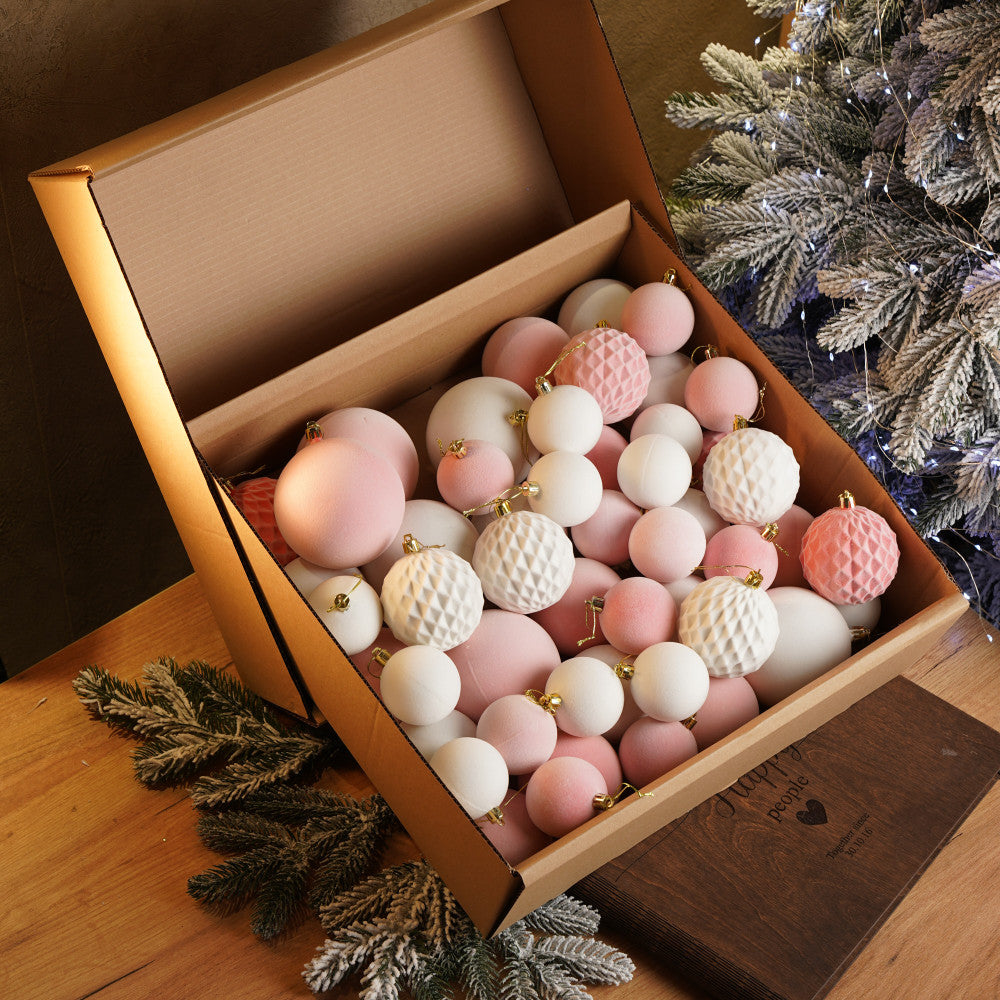 Новорічні кулі 40 шт Мікс Бархат Рожевий Білий Набір новорічних куль