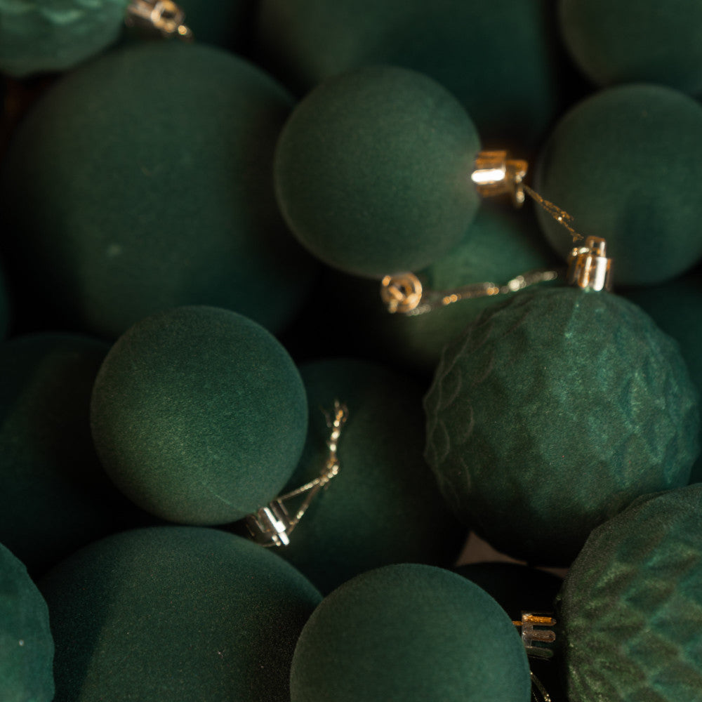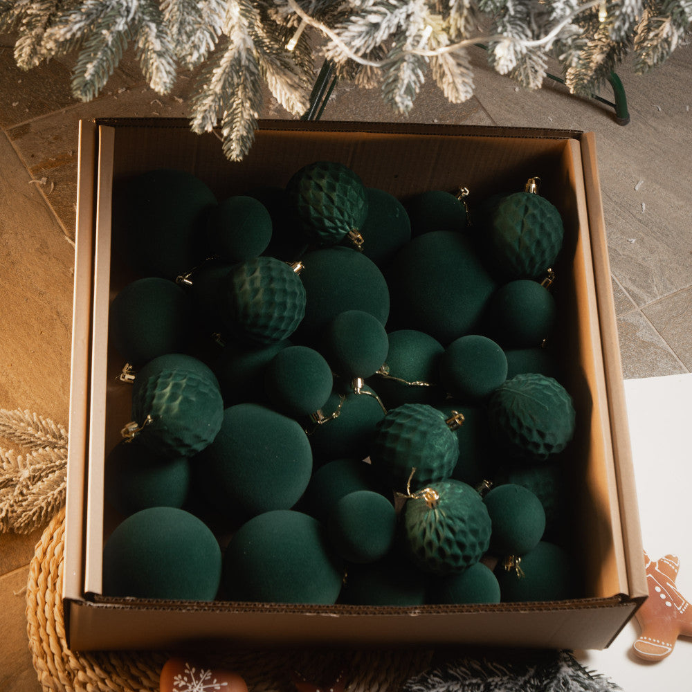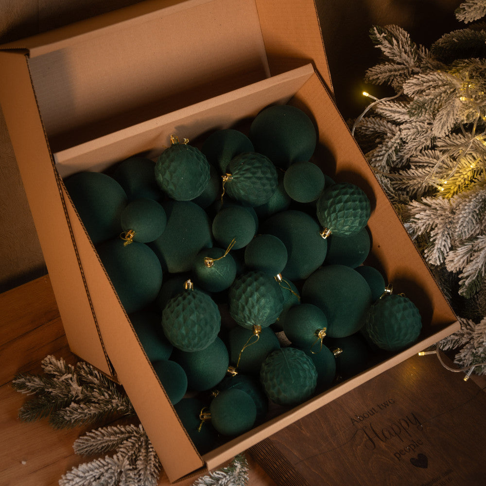 Новорічні кулі 40 шт Мікс Бархат Смарагдовий Набір новорічних куль