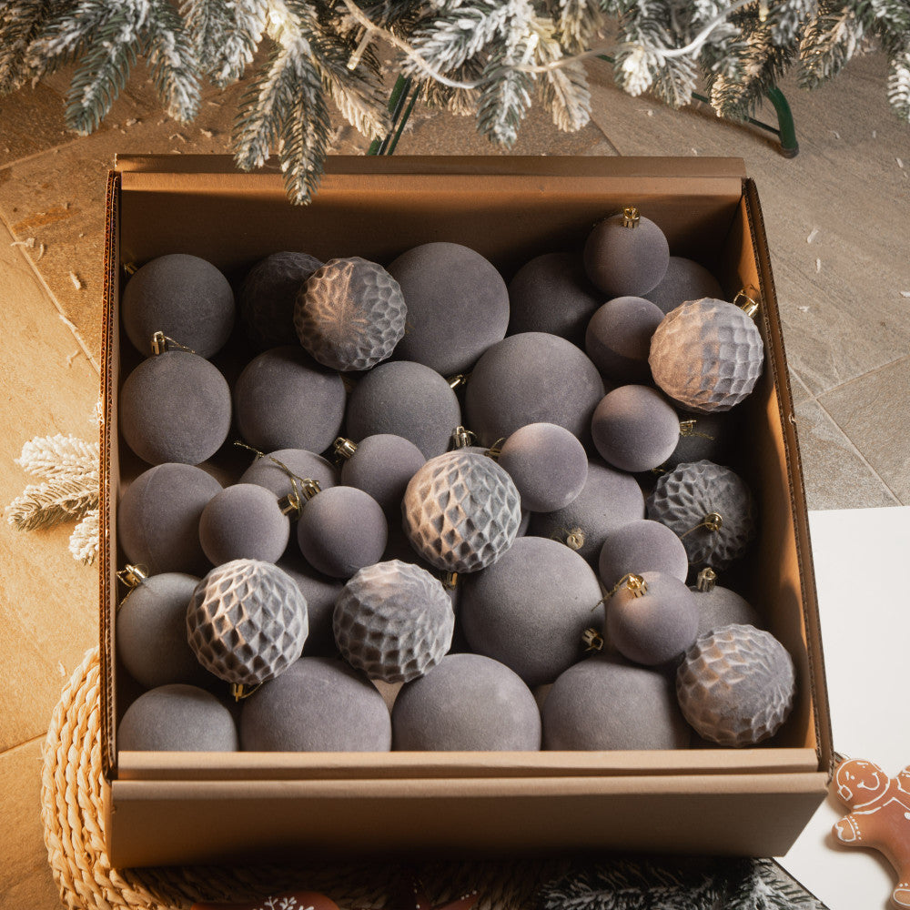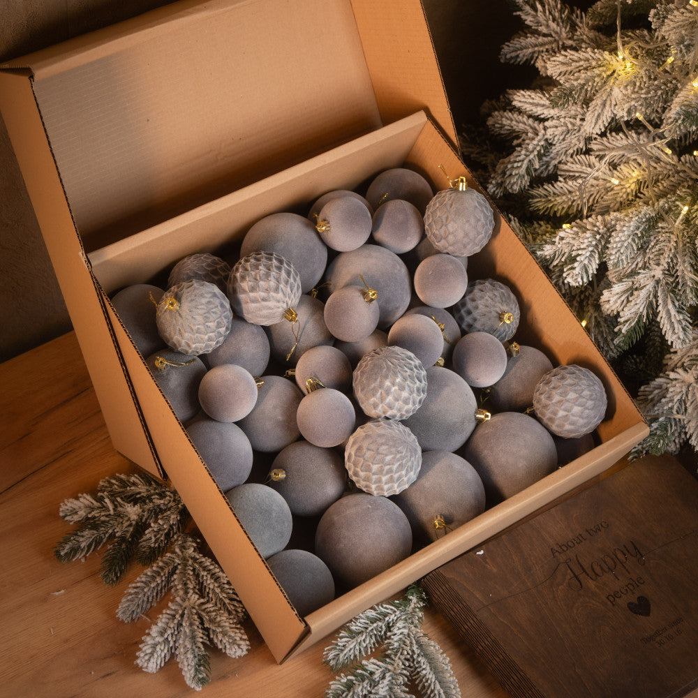 Новорічні кулі 40 шт Мікс Бархат Сірий Набір новорічних куль