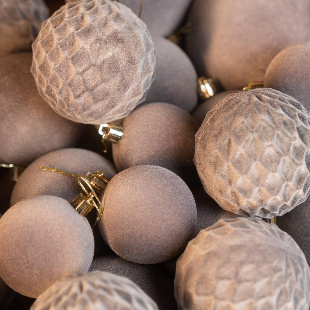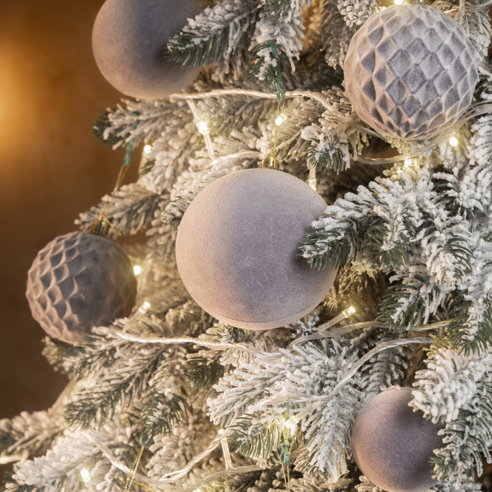 Різноманітність текстур: Оксамитові кулі 3 розмірів у 2 відтінках придадуть твоїй ялинці особливої чарівності.