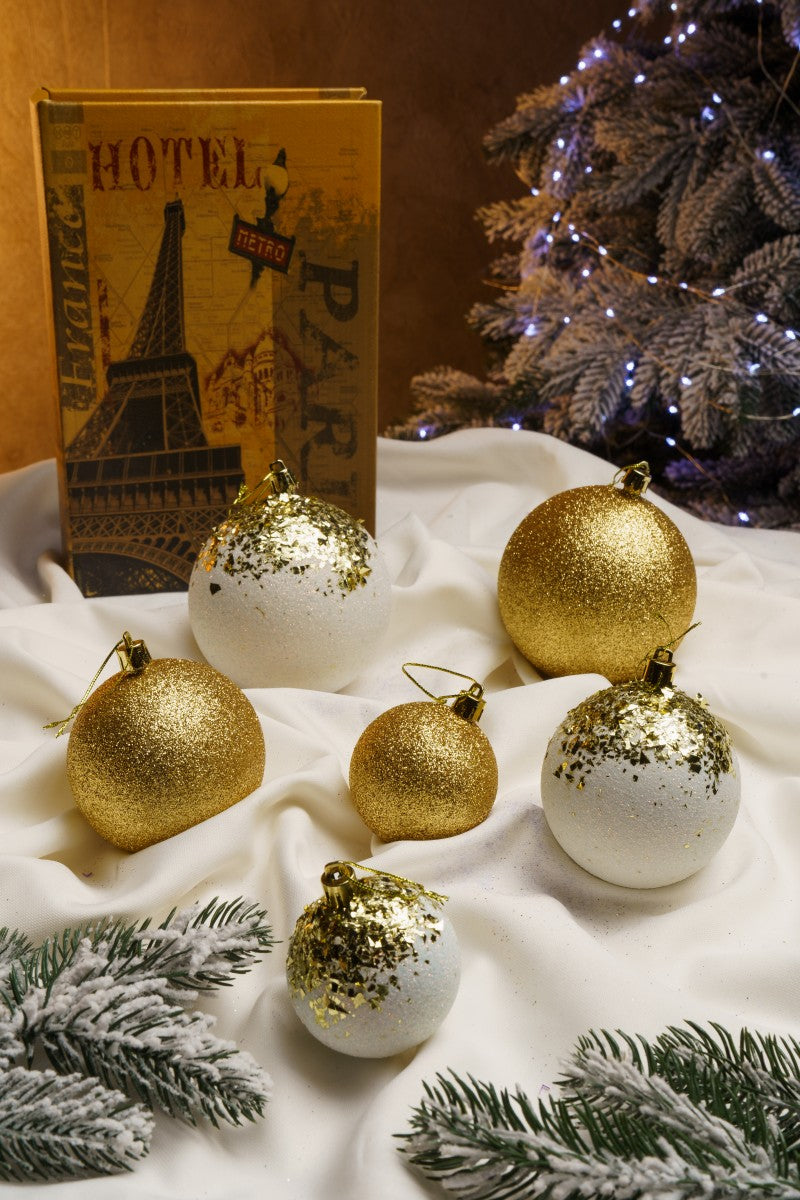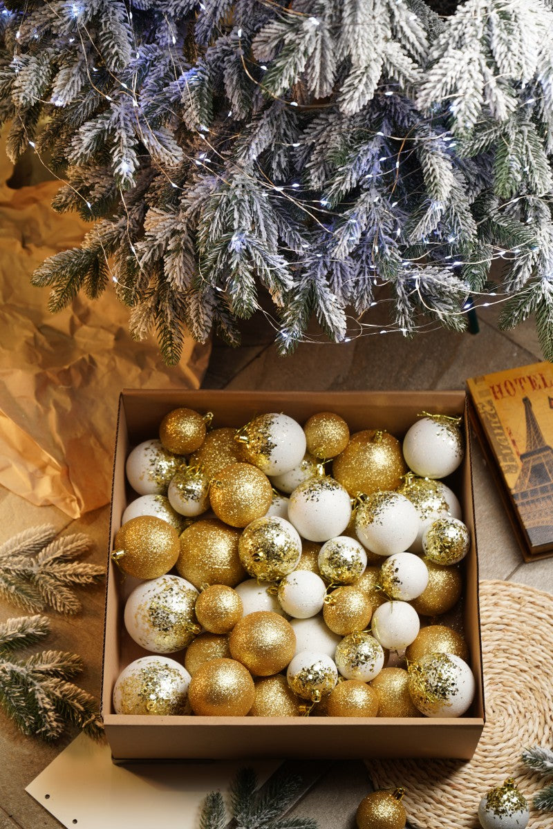• Різноманітність текстур: Кулі, покриті блискітками 3 розмірів у 2 відтінках придадуть твоїй ялинці особливої чарівності.