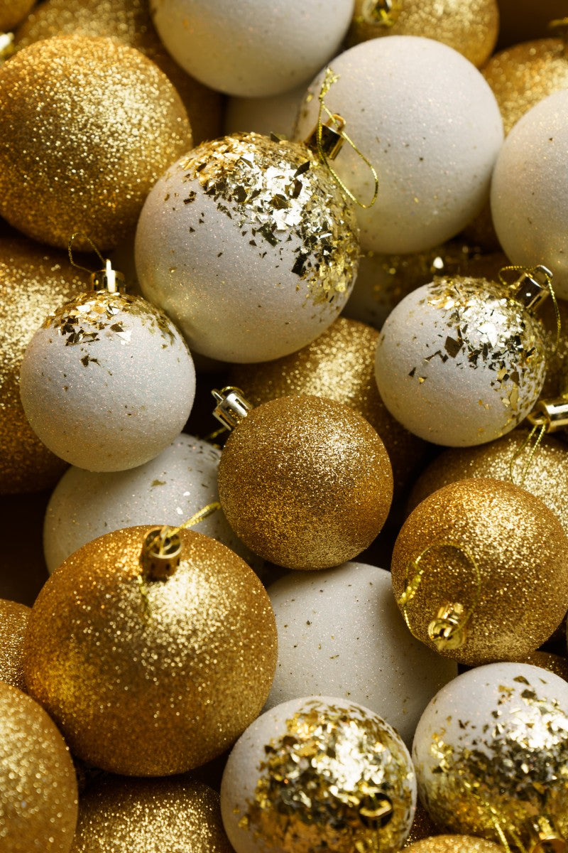 Новорічні кулі 40 шт Мікс Бите Скло Золотий Білий Набір новорічних куль
