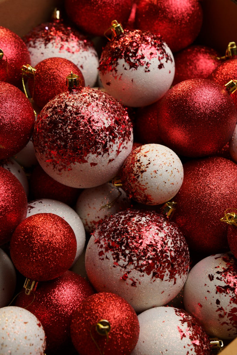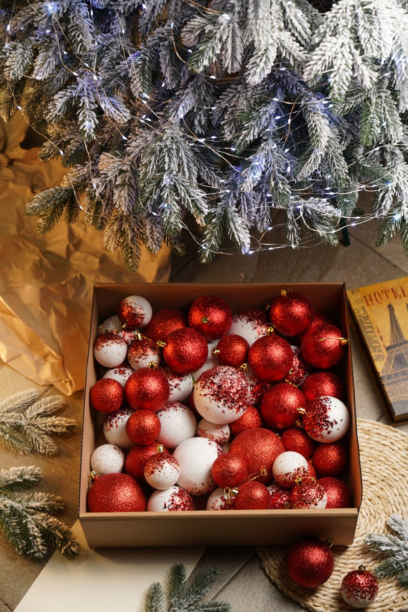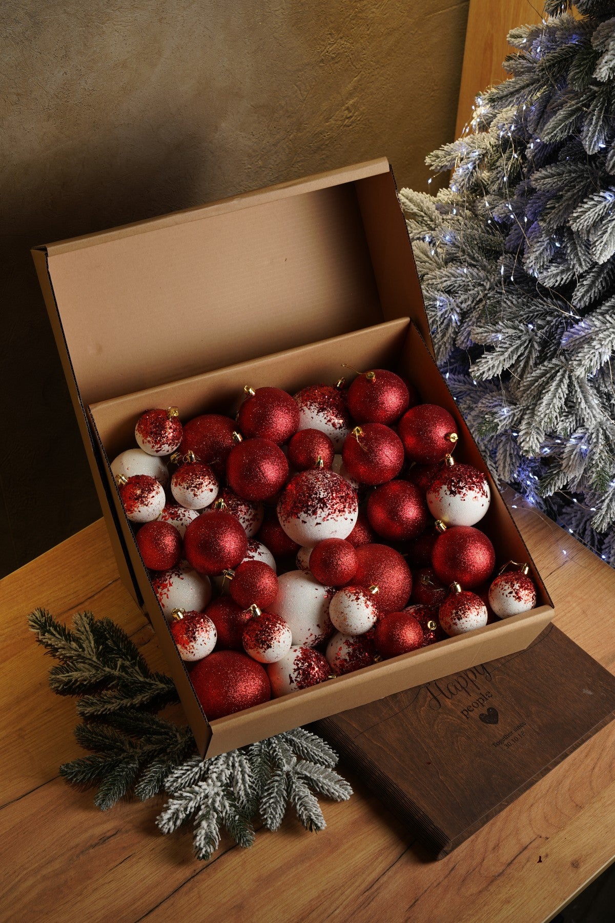 Новорічні кулі 40 шт Мікс Бите Скло Червоний Білий Набір новорічних куль