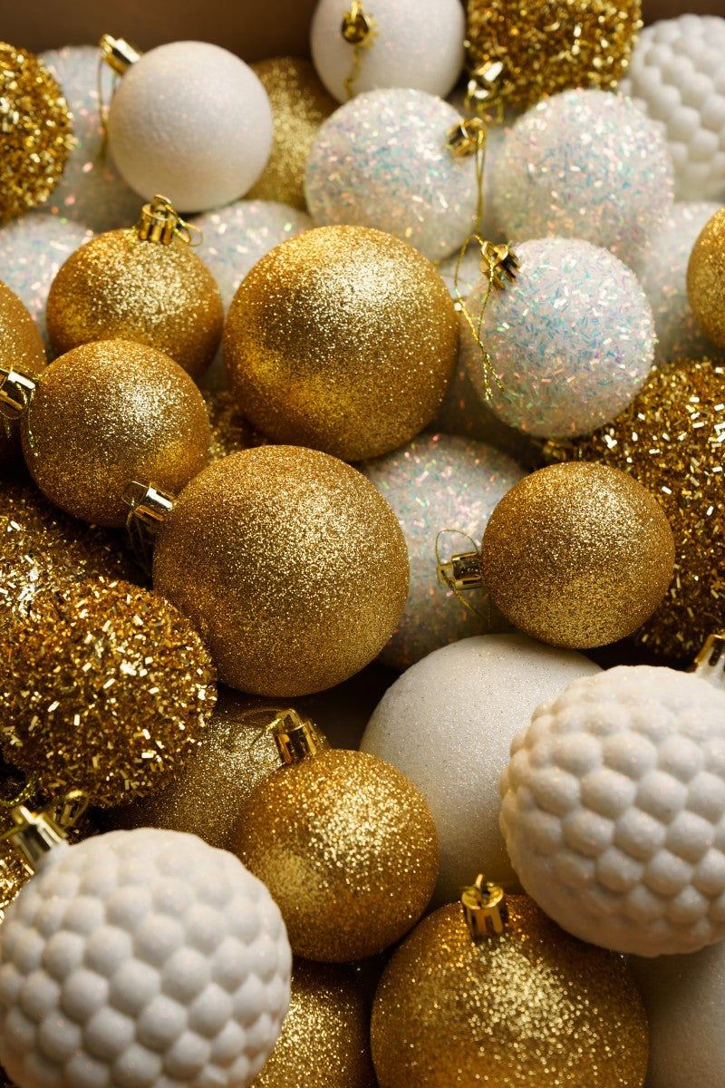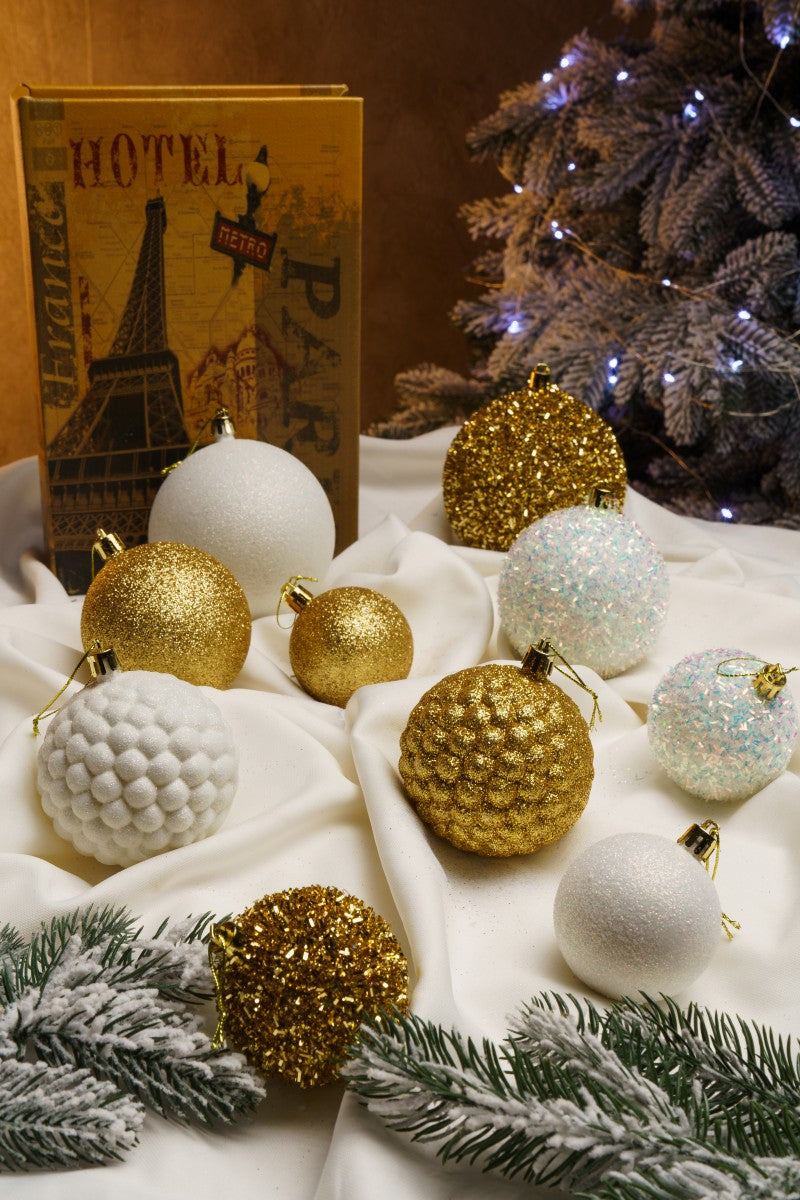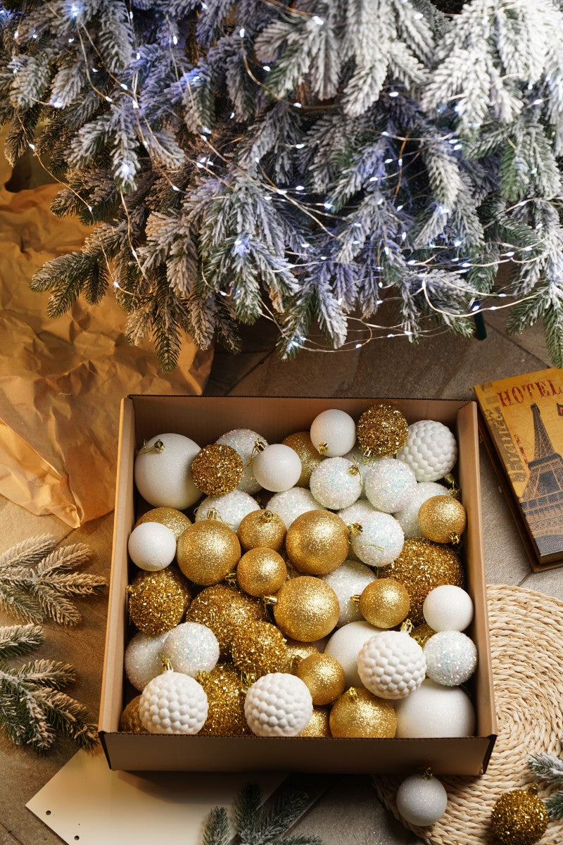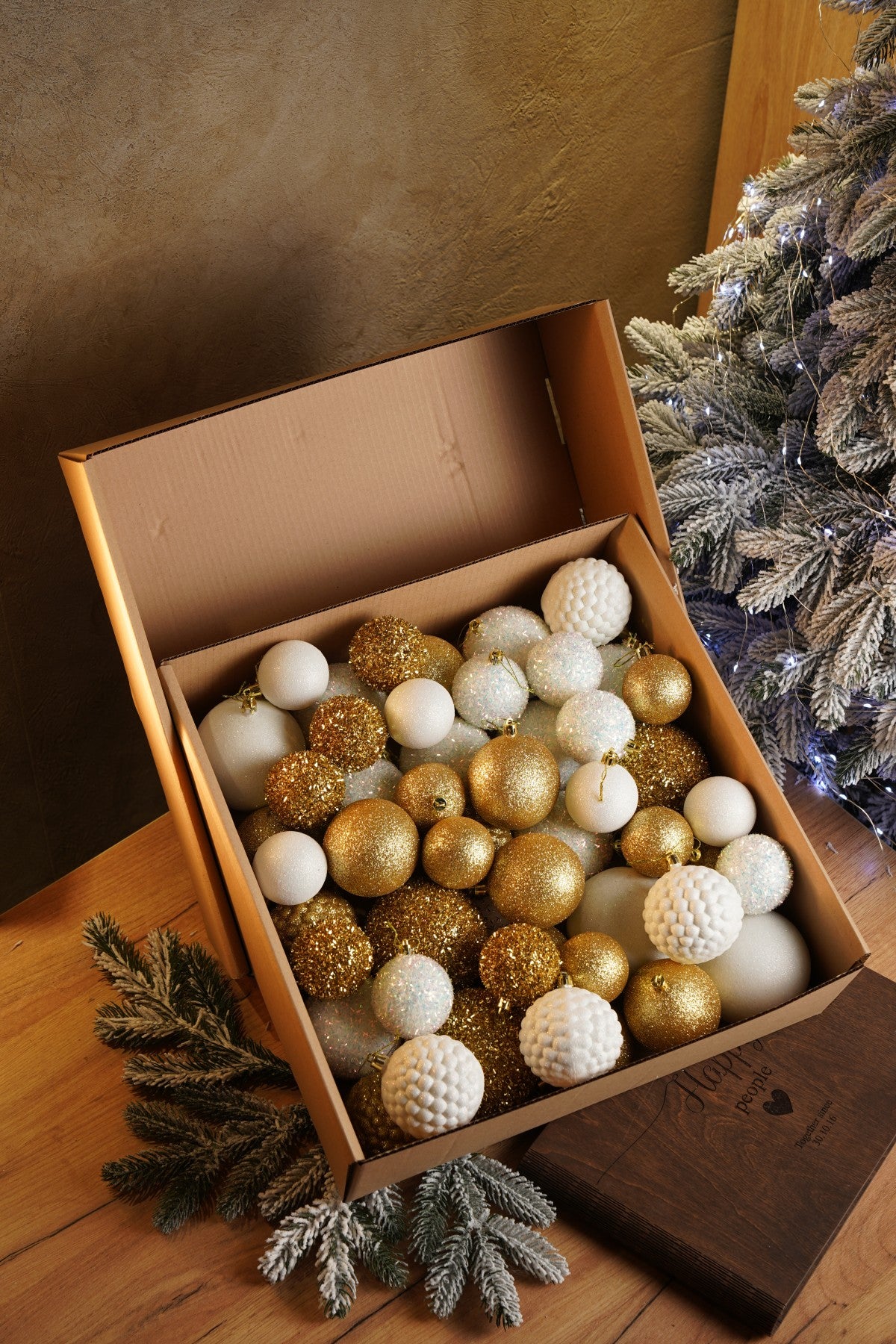 Новорічні кулі 40 шт Мікс Блиск Золотий Білий Набір новорічних куль