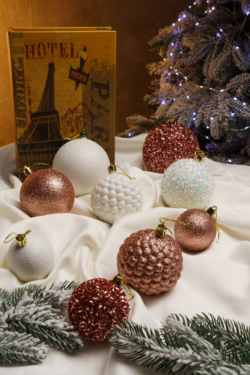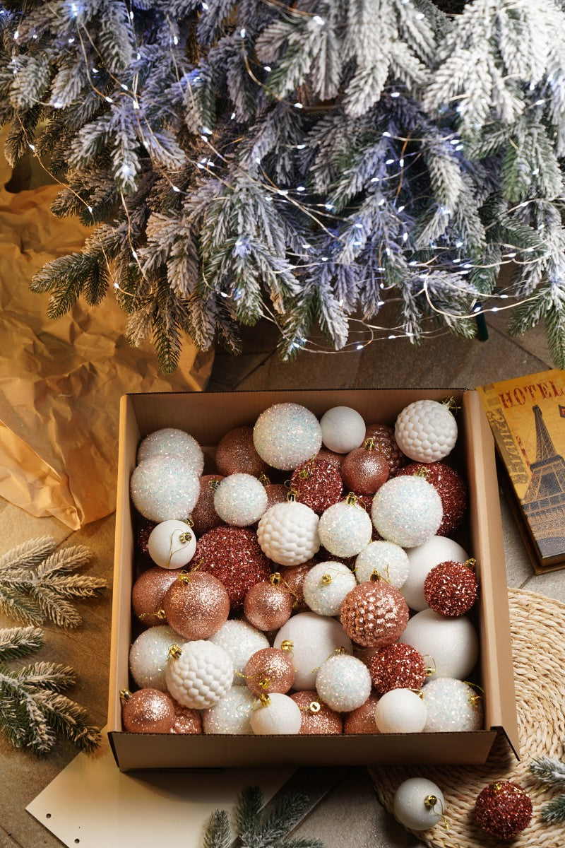 Новорічні кулі 40 шт Мікс Блиск Рожевий Білий Набір новорічних куль