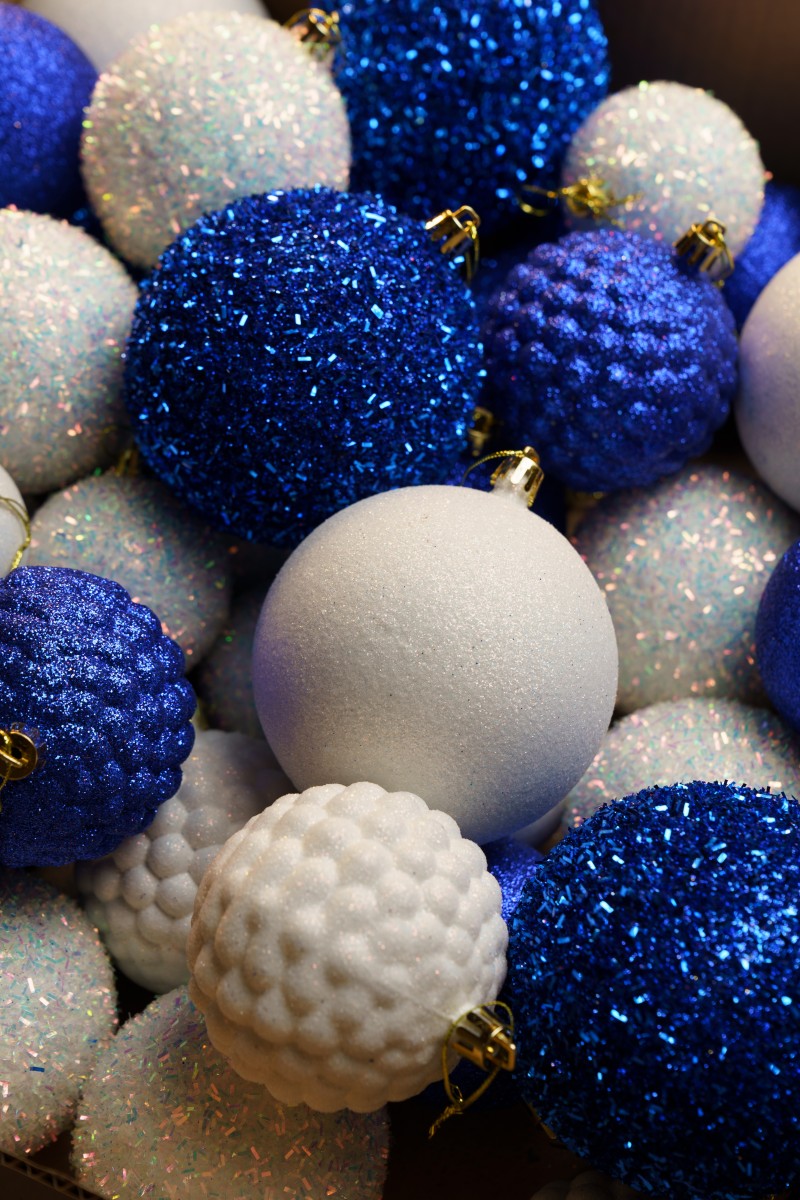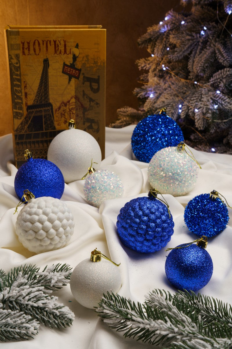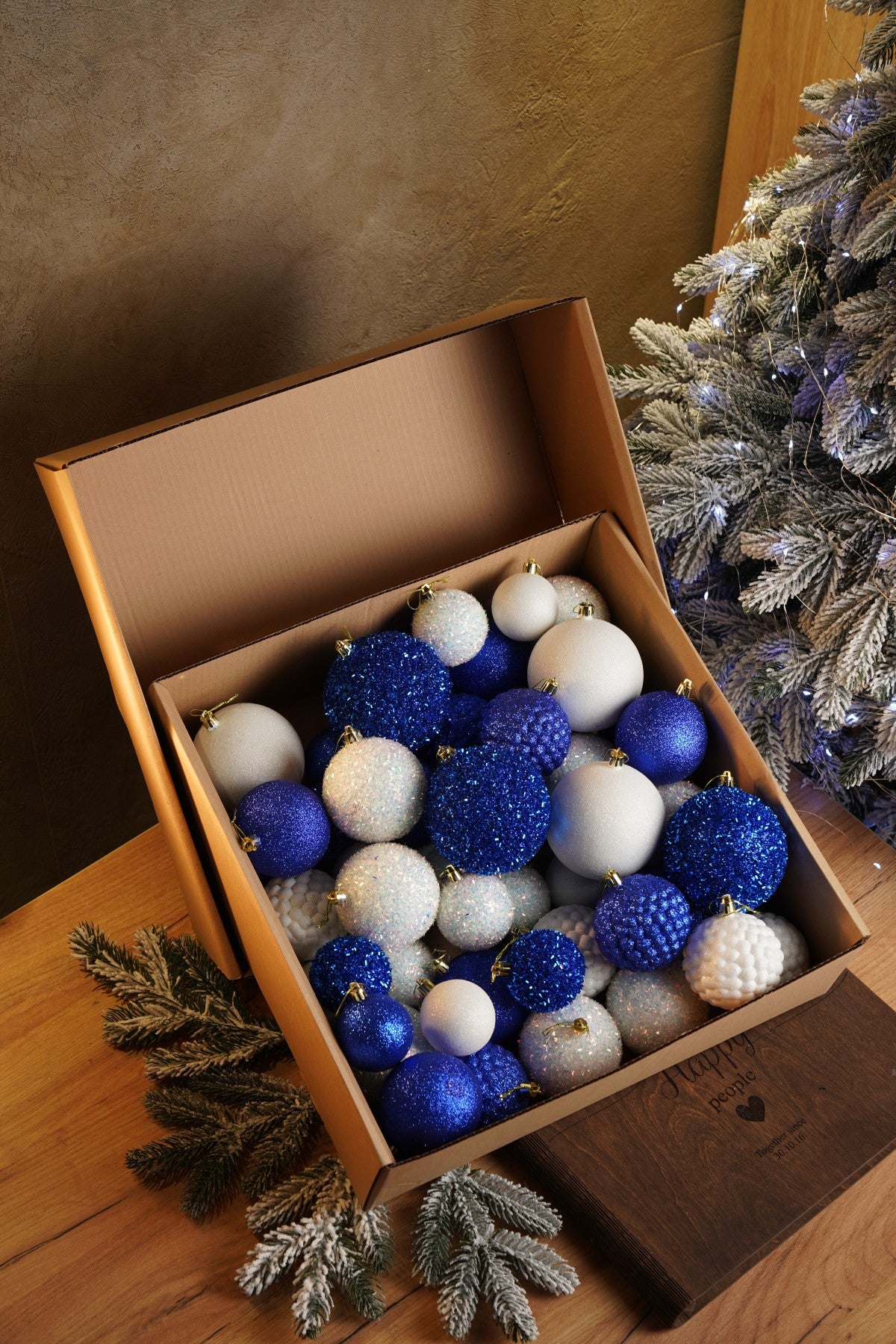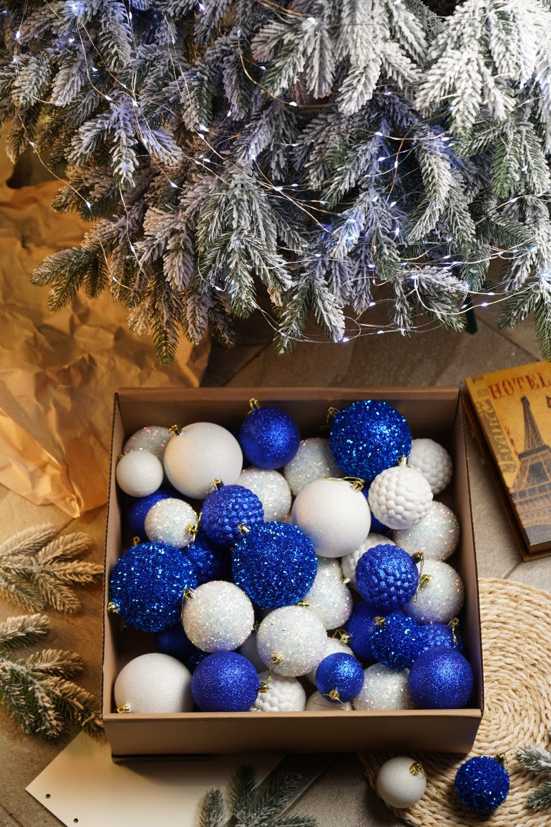 Новорічні кулі 40 шт Мікс Блиск Синій Білий Набір новорічних куль