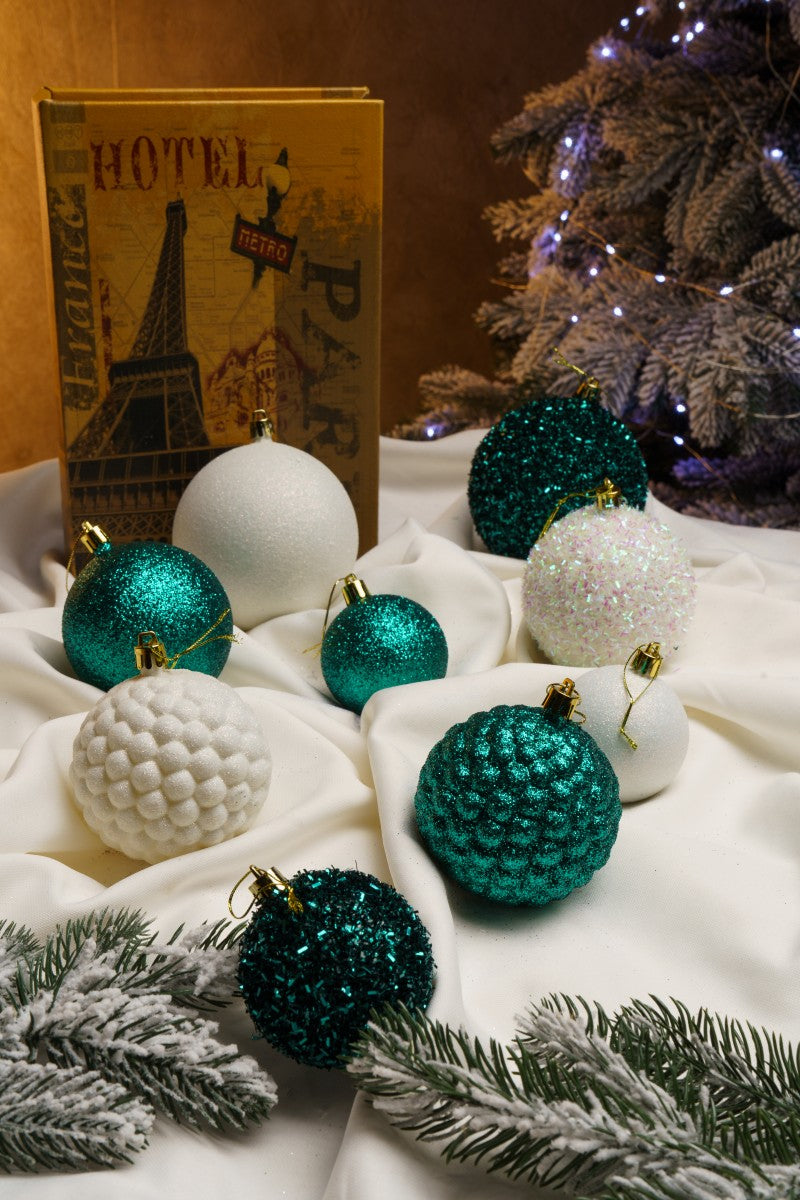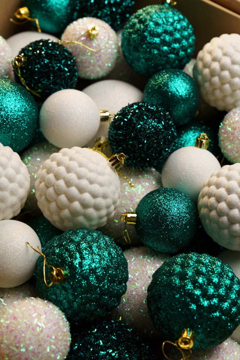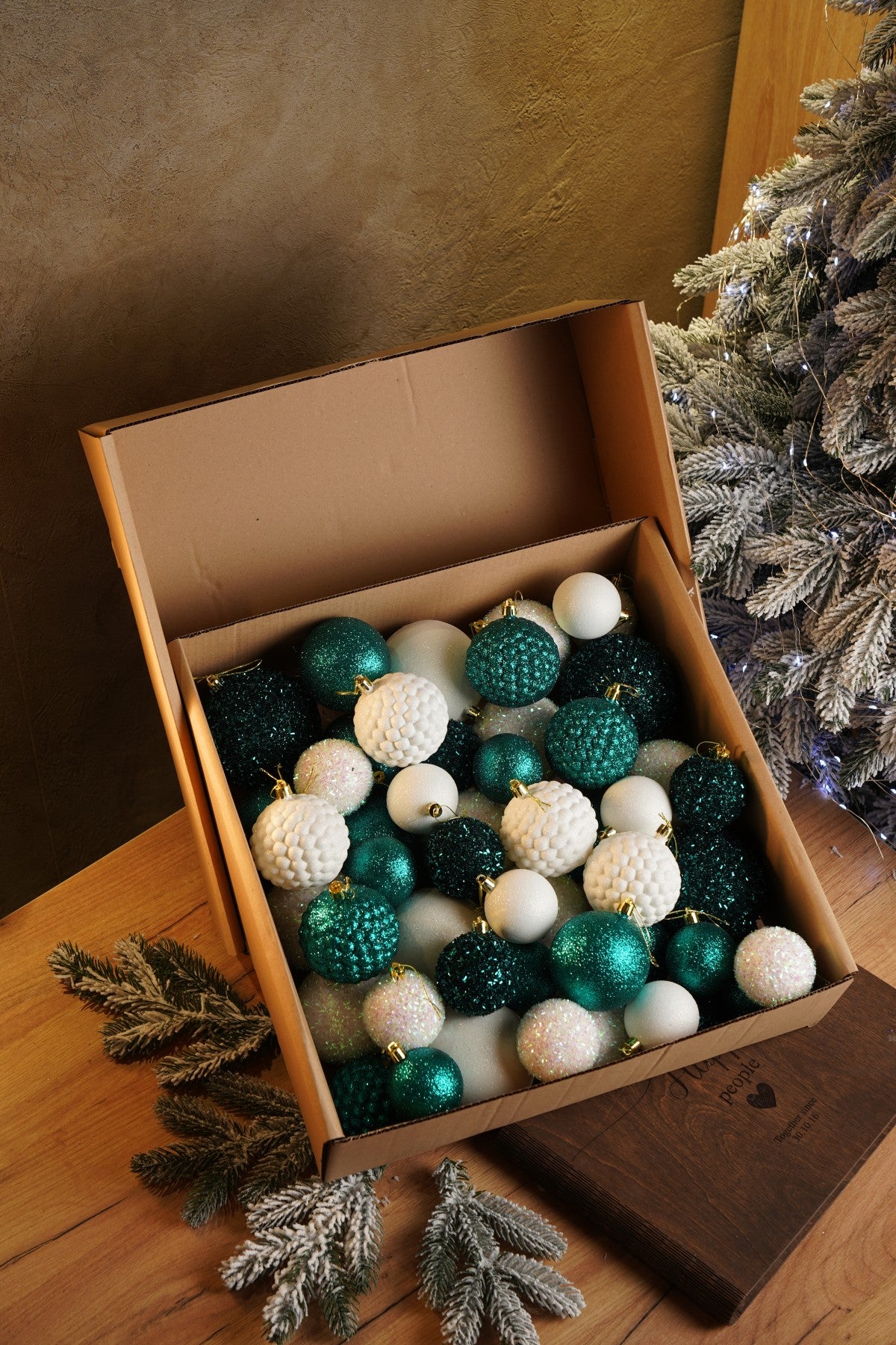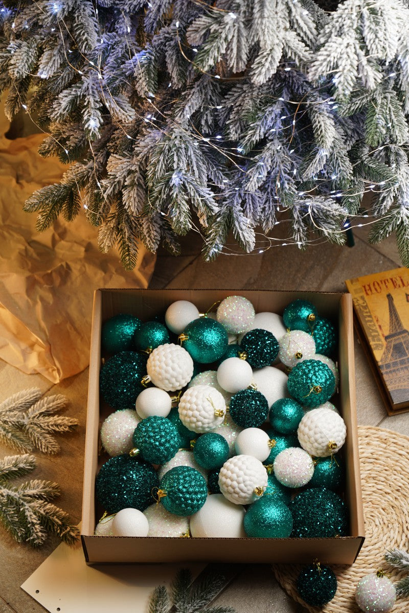 Новорічні кулі 40 шт Мікс Блиск Смарагдовий Білий Набір новорічних куль