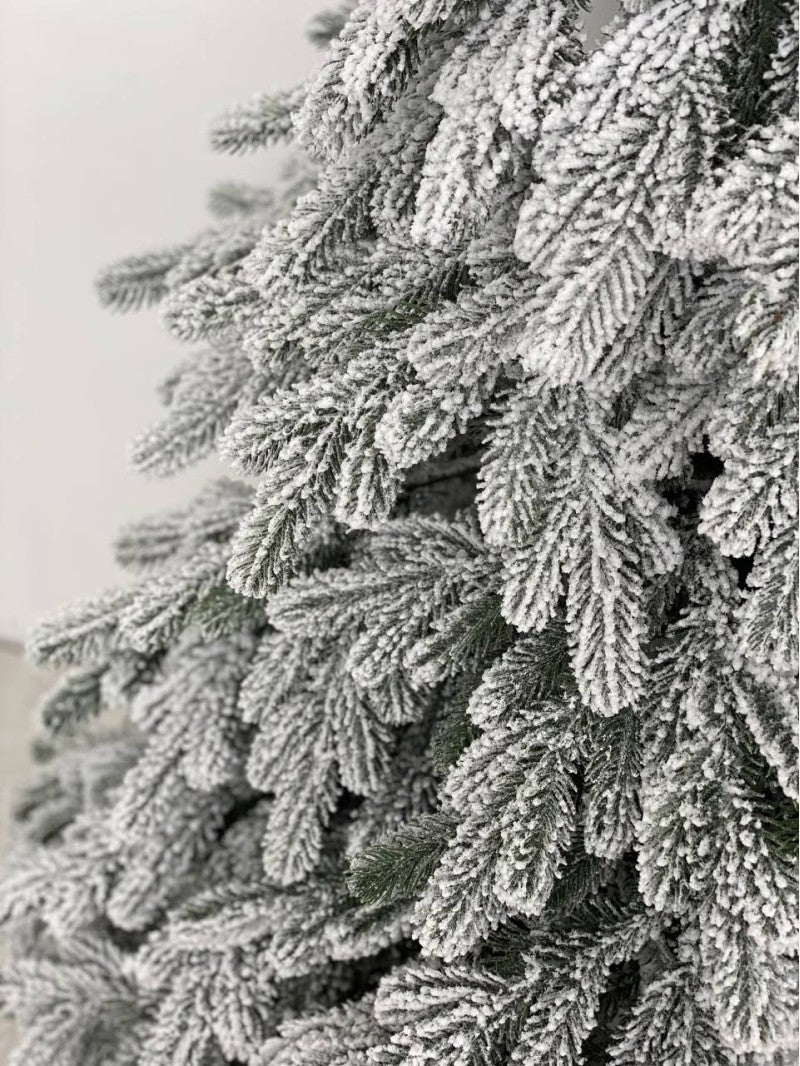 Вершина технології виробництва штучних ялинок. Завдяки спеціальному сучасному методу виробництва хвої вона має максимально реалістичний вигляд. Білий сніг із бавовни на гілках створює враження начебто вона лише із зимового лісу. Кожна гілочка та голочка на ялинці відливається у спеціальній формі, а потім кріпиться на металевий каркас ялинки. Через що самі голки не колються, не обсипаються, залишаються дуже пружними і зберігають свій вигляд протягом 10-15 років. Дана модель може стати головною прикрасою в будинку або квартирі, а також в офісному, адміністративному, торговому чи розважальному приміщенні. Дуже стійка, на металевій підставці ялинка принесе в будинок атмосферу справжнього свята, зимової казки, подарує незабутні враження та почуття легкості, радості, щастя напередодні Нового Року та Різдва.